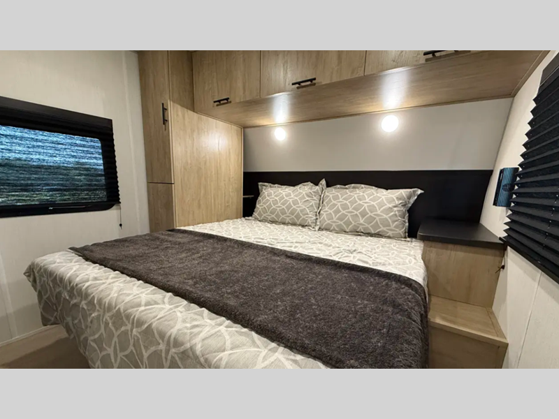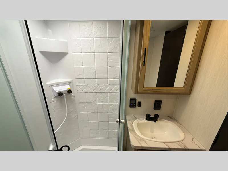 Sleeps 4 Slides 2 Length 33 ft 7 in Ext Width 8 ft Ext Height 11 ft 1 in Hitch Weight 1029 lbs GVWR 9995 lbs Dry Weight 7341 lbs Cargo Capacity 2654 lbs Fresh Water Capacity 52 gals Grey Water Capacity 38 gals Black Water Capacity 38 gals Furnace BTU 30000 btu Available Beds RV King Refrigerator Type 12V Cooktop Burners 3 Number of Awnings 1 Water Heater Type Tankless AC BTU 15000 btu Awning Info 21' Power w/LED Light Strip Axle Count 2 Shower Type Neo-Angled Similar Floorplans