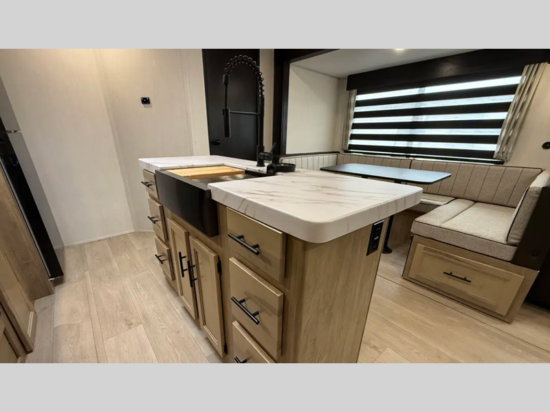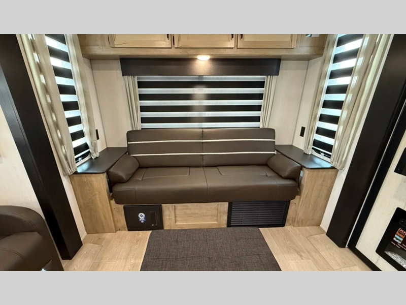 Sleeps 3 Slides 2 Length 36 ft 3 in Ext Width 8 ft Ext Height 11 ft 3 in Hitch Weight 956 lbs GVWR 9995 lbs Dry Weight 7569 lbs Cargo Capacity 2426 lbs Fresh Water Capacity 52 gals Grey Water Capacity 38 gals Black Water Capacity 38 gals Furnace BTU 30000 btu Available Beds RV King Refrigerator Type 12V Cooktop Burners 3 Number of Awnings 1 Water Heater Type Tankless AC BTU 15000 btu Awning Info 15' Power w/LED Light Strip Axle Count 2 Shower Type Standard Solar Wattage 200 watts Similar Floorplans