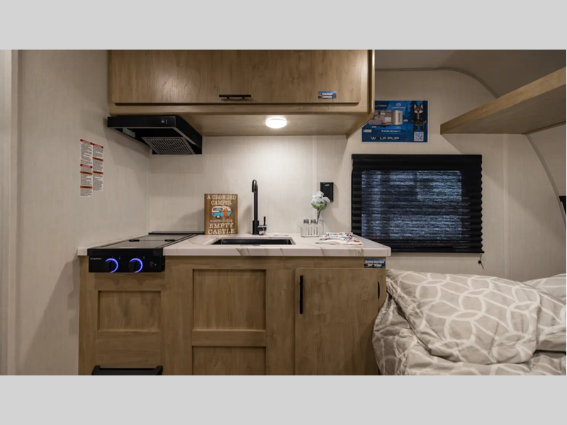 Sleeps 2 Length 14 ft 6 in Ext Width 7 ft 6 in Ext Height 10 ft 2 in Int Height 0 ft Hitch Weight 320 lbs GVWR 3820 lbs Dry Weight 2309 lbs Cargo Capacity 1511 lbs Fresh Water Capacity 12 gals Grey Water Capacity 28 gals Black Water Capacity 28 gals Furnace BTU 20000 btu Available Beds Queen Number of Awnings 1 AC BTU 8000 btu Cargo Deck Size 0 ft Awning Info 9' Full Length Power Axle Count 1 Shower Type Tub/Shower Combo -