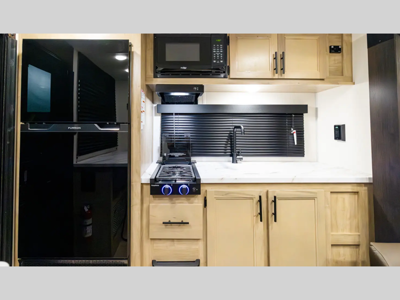 Sleeps 4 Slides 1 Length 23 ft 10 in Ext Width 7 ft 6 in Ext Height 10 ft 4 in Hitch Weight 500 lbs GVWR 5600 lbs Dry Weight 4459 lbs Cargo Capacity 1141 lbs Fresh Water Capacity 26 gals Grey Water Capacity 28 gals Black Water Capacity 28 gals Furnace BTU 20000 btu Available Beds Queen Refrigerator Type 12V High Efficiency Number of Awnings 1 Water Heater Type Tankless AC BTU 8000 btu Awning Info 12' Full Length Power Axle Count 1 Shower Type Tub/Shower Combo Solar Wattage 200 watts -