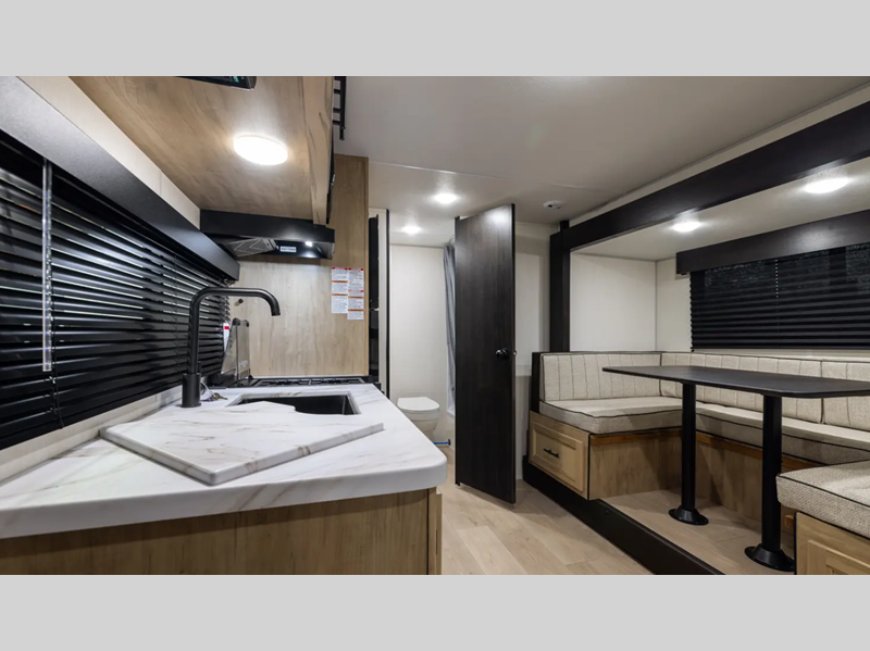 Each model features durable construction material so you can enjoy your RV for years to come. There are full bath and kitchen amenities, comfortable places to relax and sleep, plus ample storage space for your belongings. Includes a full length power awning, creating a shaded space to relax, cook, or spend time with family and friends at the campsite. Built with adventure in mind, the Adventure Package with aggressive off road tires and a lifted frame helps you explore beyond the typical campground.