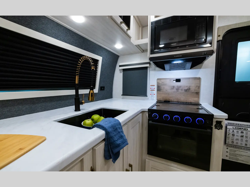 Sleeps 4 Slides 3 Length 38 ft 10 in Ext Width 8 ft Ext Height 11 ft 5 in Hitch Weight 955 lbs Dry Weight 8838 lbs Cargo Capacity 2517 lbs Fresh Water Capacity 40 gals Grey Water Capacity 60 gals Black Water Capacity 30 gals Available Beds Custom King Refrigerator Type 12V Black Glass Refrigerator Size 10 cu ft Number of Awnings 1 Water Heater Type Tankless AC BTU 15000 btu TV Info LR HD TV Awning Info 20' Electric with LED Lights Axle Count 2 Washer/Dryer Available Yes Shower Type Standard Electrical Service 50 amp Similar Floorplans