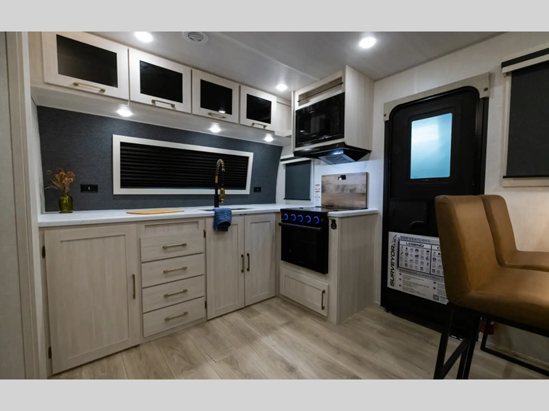 The Grand Surveyor travel trailers by Forest River include features and components found in high-end fifth wheels and motorhomes allowing you to go "Glamping" if you wish!