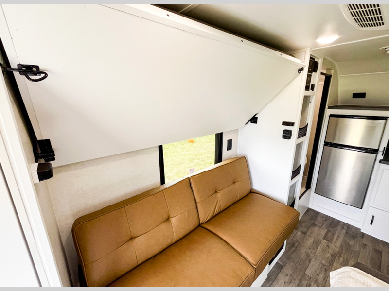 Sleeps 4 Length 16 ft 2 in Ext Width 8 ft Ext Height 9 ft 10 in Int Height 6 ft 6 in Dry Weight 2595 lbs Fresh Water Capacity 16 gals Grey Water Capacity 14.5 gals Black Water Capacity 22.5 gals Tire Size ST235/75R-15 All Terrain Furnace BTU 19000 btu Number Of Bunks 1 Available Beds Full Refrigerator Type 12V Two Door Refrigerator Size 4.5 cu ft Cooktop Burners 2 Number of Awnings 2 Water Heater Type Fogatti On Demand AC BTU 13500 btu Awning Info 7' 8" Rear, 10' Side Axle Count 1 Shower Type Wet/Bath Shower Similar Floorplans