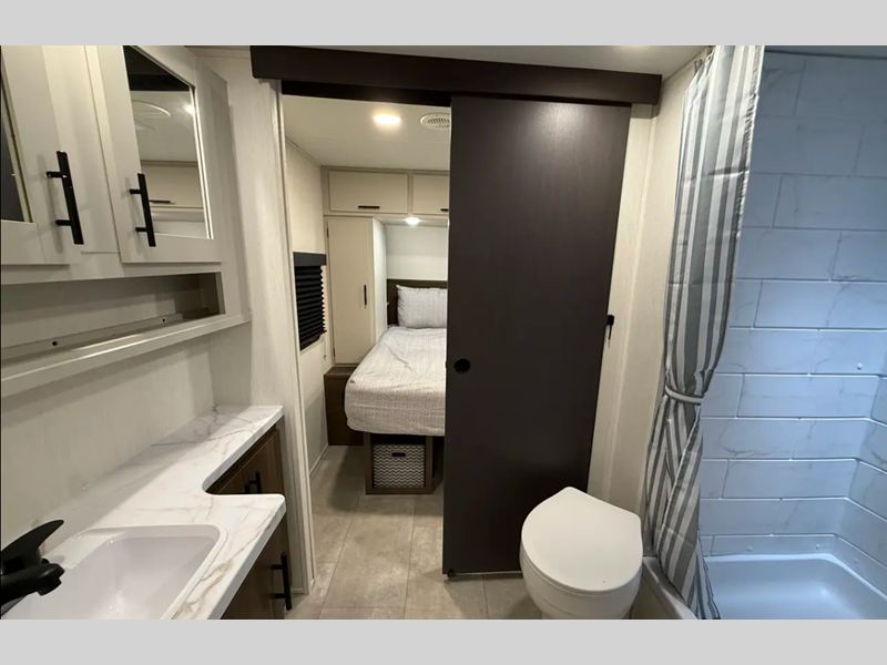 Each is built with Eternabond construction, which is a bonded aluminum structure for maximum strength and durability. The interior offers full bath and kitchen amenities, comfortable sleeping arrangements, and plenty of storage for all your belongings. You'll enjoy a power awning with LED lights on each model, along with a tankless water heater, exterior speakers, a 12V refrigerator, and many more convenient features!